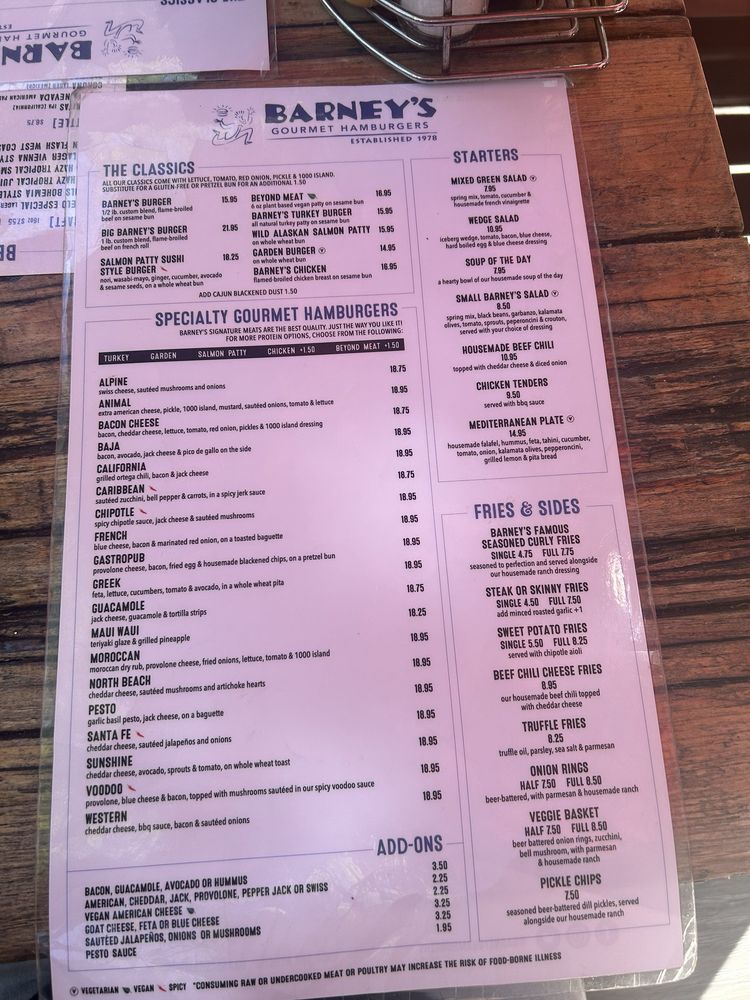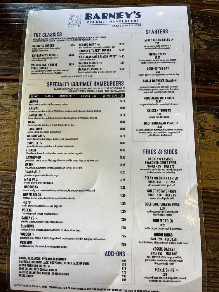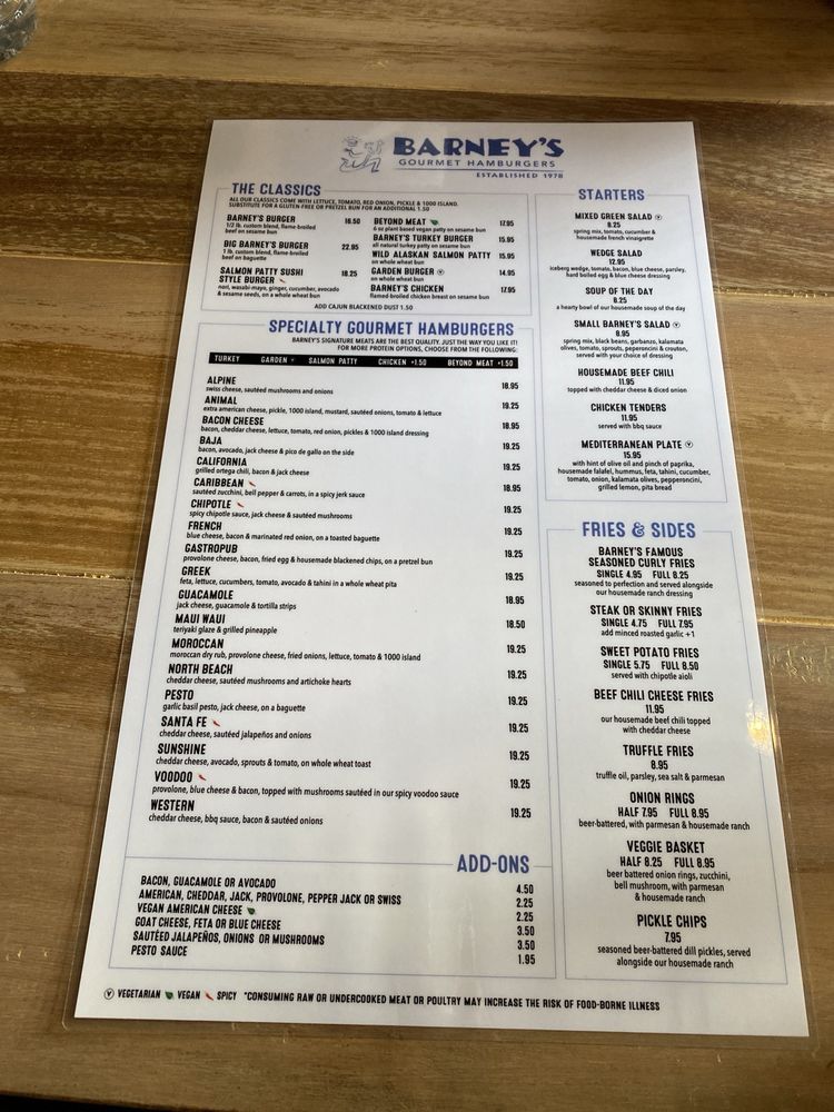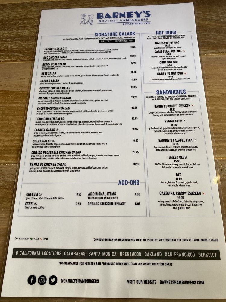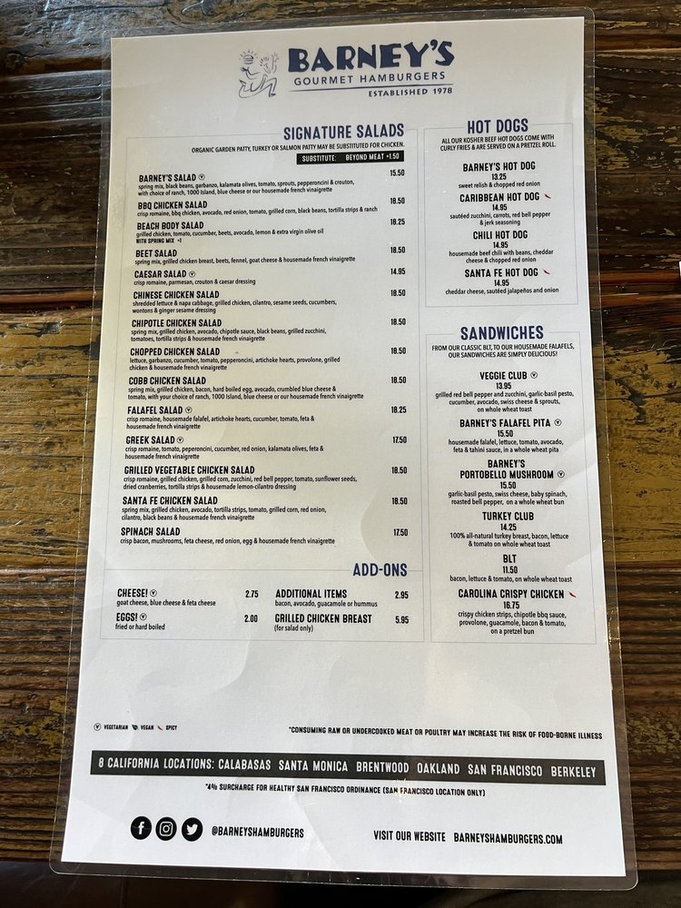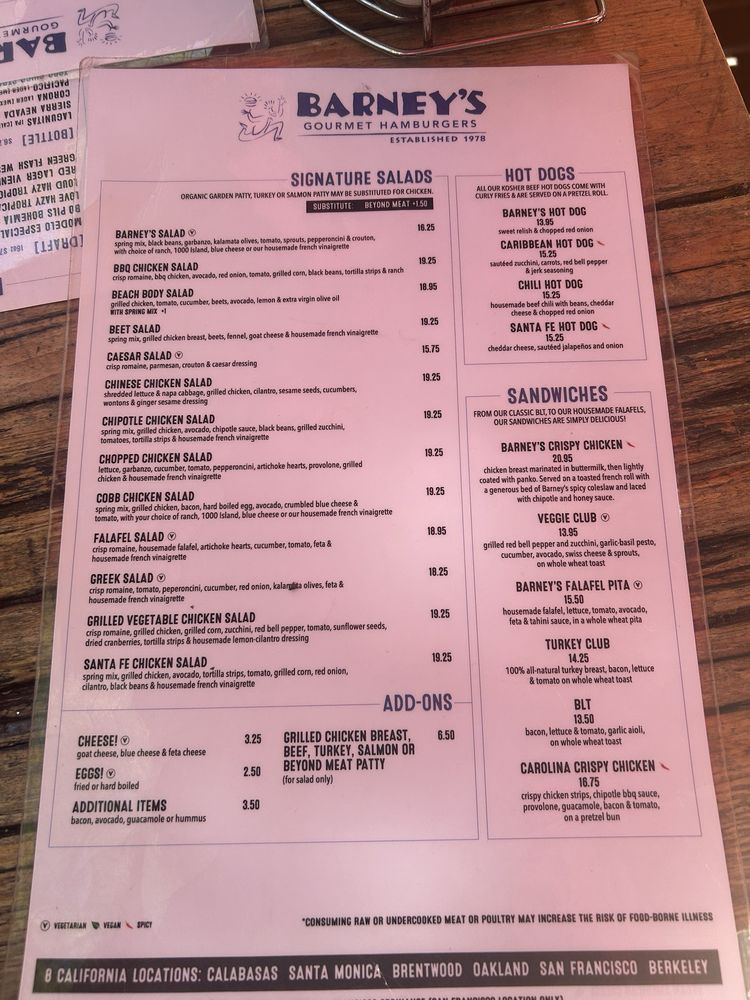Barney's Gourmet Hamburgers, located in Oakland, CA, offers a diverse range of starters, signature salads, and sandwiches for diners to enjoy. With options like the Veggie Club sandwich with grilled veggies and avocado, or the Beach Body Salad with grilled chicken and fresh vegetables, there is something for everyone, including those with vegan preferences. Customers rave about the delicious burgers, salads, and milkshakes, highlighting the quality ingredients and friendly service. The cozy atmosphere and outdoor garden seating add to the overall dining experience. Whether you are in the mood for a hearty burger or a refreshing salad, Barney's Gourmet Hamburgers is a must-visit destination for a satisfying meal.